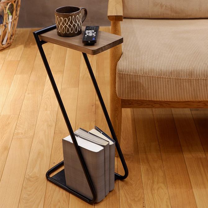 楽天市場 サイドテーブル ソファサイドテーブル ベッドサイドテーブル おしゃれ 北欧風 アンティーク風 ウォールナット突板 木製 高さ60cm 高さ70cm スチール脚 収納付き 人気 おすすめ Ikikagu イキカグ